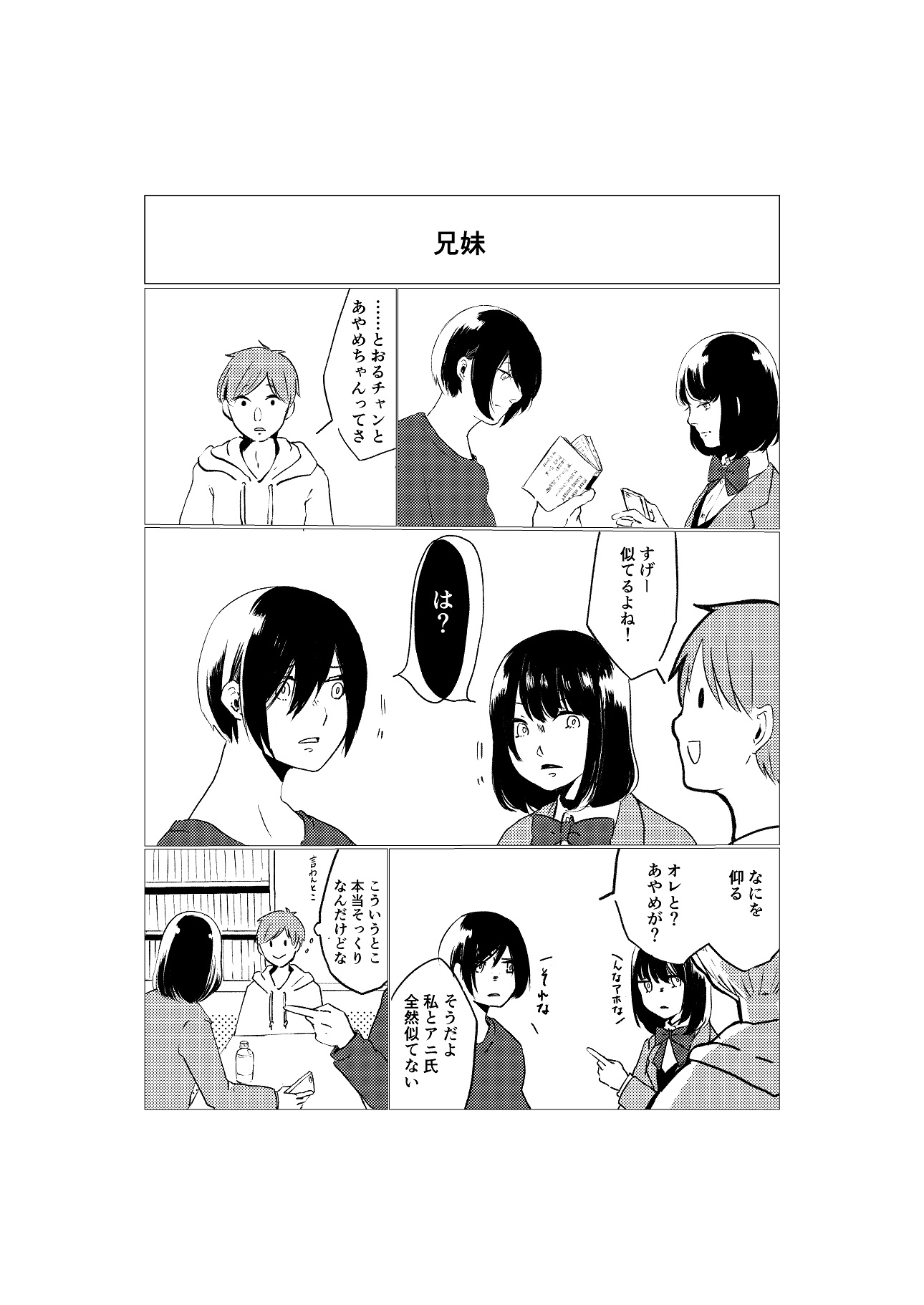 というわけで唐突に一ページ漫画です。好き嫌いめちゃくちゃ多いアニと高校生の妹の兄妹となんでもよくたべる幼なじみで、アニと幼なじみが大学進学を機にルームシェアするという設定がふわっと浮かんできたのでそいつらを描いてみました。